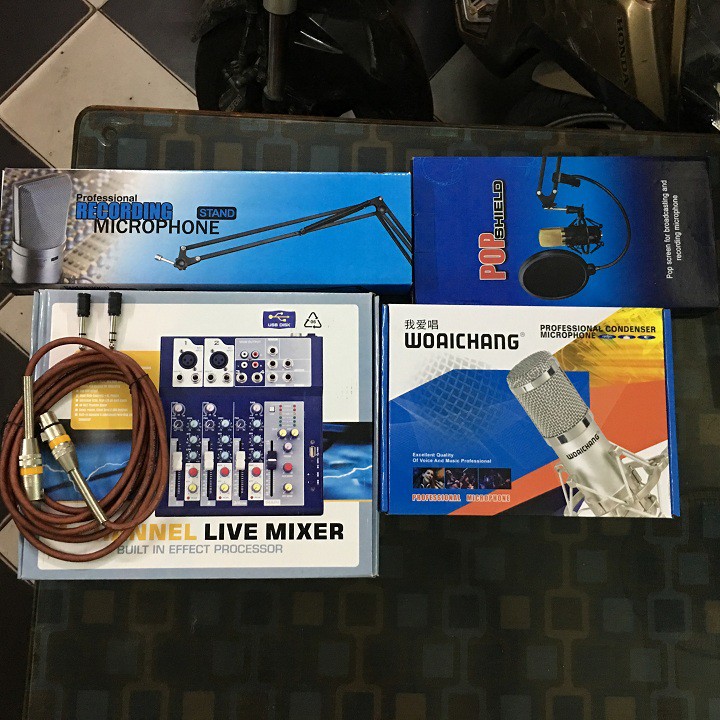 Trọn bộ hát livestream thì không thể thiếu micro thu âm BM900 WOAICHANG chính hãng loại micro hát livestream hiện nay ( quý khách lưu ý phải là micro bm 900 chính hãng nhé, từ nước sơn bóng và đẹp, lưới của mic nhỏ và đều đẹp, bộ khung đỡ của micro phải là bằng sắt nhé )