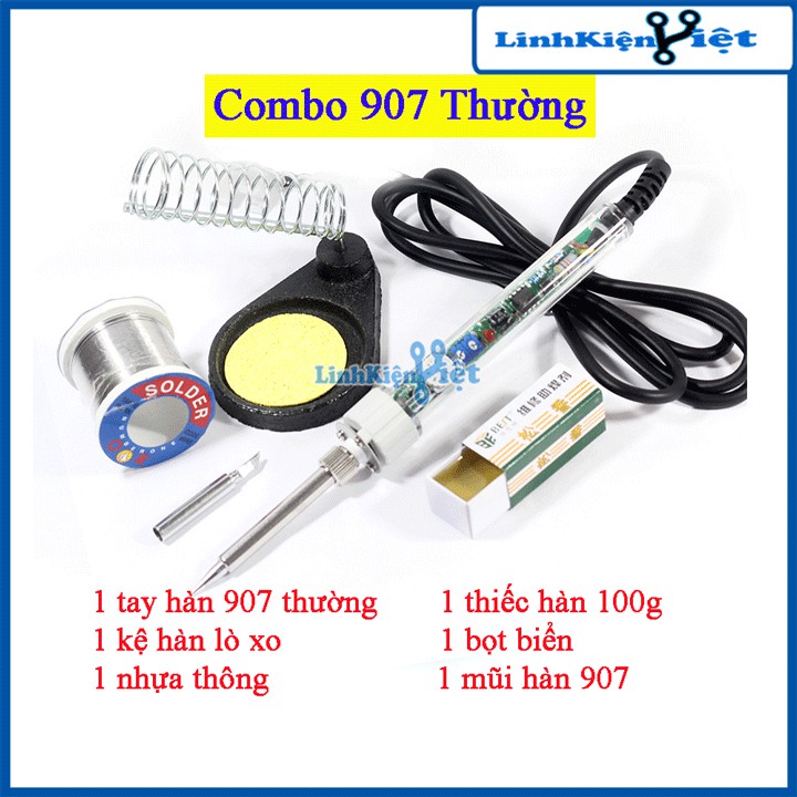 Nhà cửa & Đời sống > Dụng cụ & Thiết bị tiện ích > Dụng cụ > Dụng cụ hàn điện || Combo Mỏ Hàn 907 220V-60W và 5 Món Phụ Kiện ( Mũi Hàn Dao, Kệ Hàn, Bọt Biển, Thiếc OK, Nhựa Thông )Còn hàng