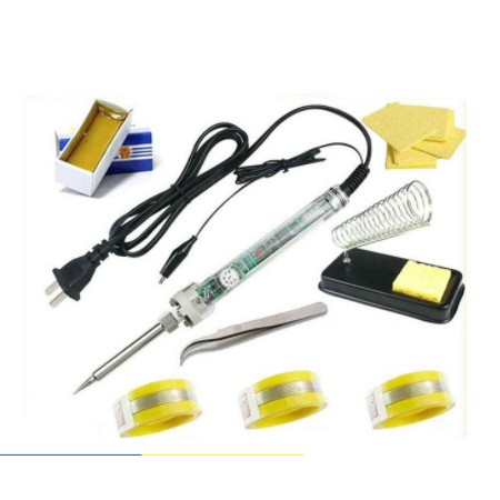 Nhà cửa & Đời sống > Dụng cụ & Thiết bị tiện ích > Dụng cụ > Dụng cụ hàn điện || Combo Mỏ Hàn 907 220V-60W Và 7 Món Phụ Kiện (Kẹp Linh Kiện, Kệ Hàn, Bọt Biển, 3 Cuộn Thiếc, Nhựa Thông)Còn hàng