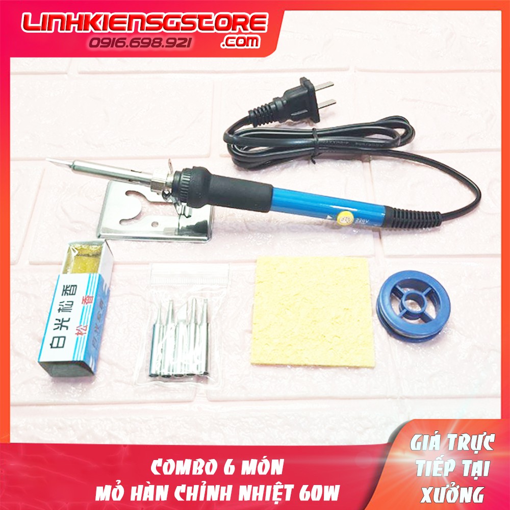 Combo Mỏ Hàn Chỉnh Nhiệt 60w , 5 mũi hàn , nhựa thông , chì hàn , gác mỏ hàn , bọt biển