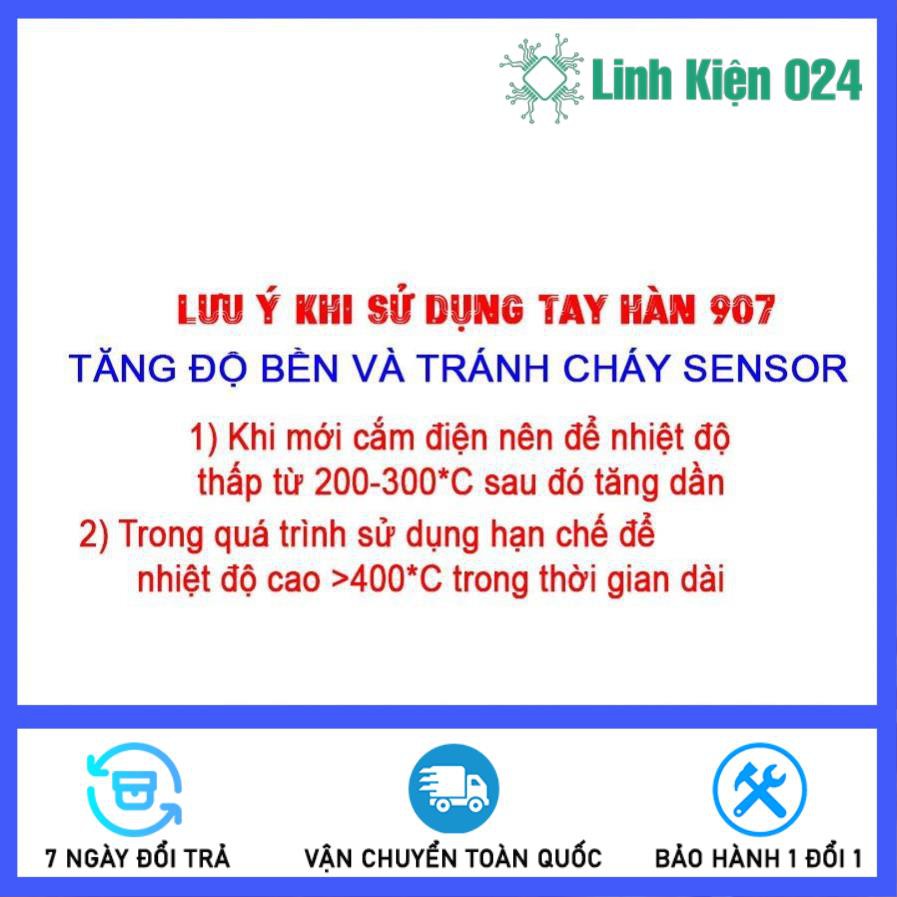 - Tay hàn No.907 là loại tay hàn nung được mọi người ưa chuộng vì sự nhỏ gọn, thiết kế hiện đại, tiện dụng và có giá thành hợp lý, thích hợp cho việc sửa chữa các thiết bị điện tử, dùng cho cá nhân hoặc dùng cho nhà máy sản xuất. Đặc biệt tay hàn có núm điều chỉnh nhiệt độ trên thân máy có thể điều chỉnh nhiệt độ một cách dễ dàng. Đầu mũi hàn dễ dàng thay thế khi mũi hàn cũ hỏng hoặc muốn thay các loại mũi hàn dao, nhọn...