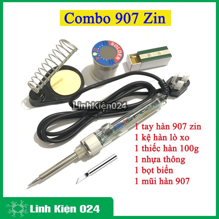Combo Mỏ Hàn NO.907 ZIN -60W và 5 Món Phụ Kiện ( Mũi Hàn Dao T-K, Kệ Hàn, Bọt Biển Tròn, Thiếc OK, Nhựa Thông )*****GÓI SẢN PHẨM BAO GỒM: