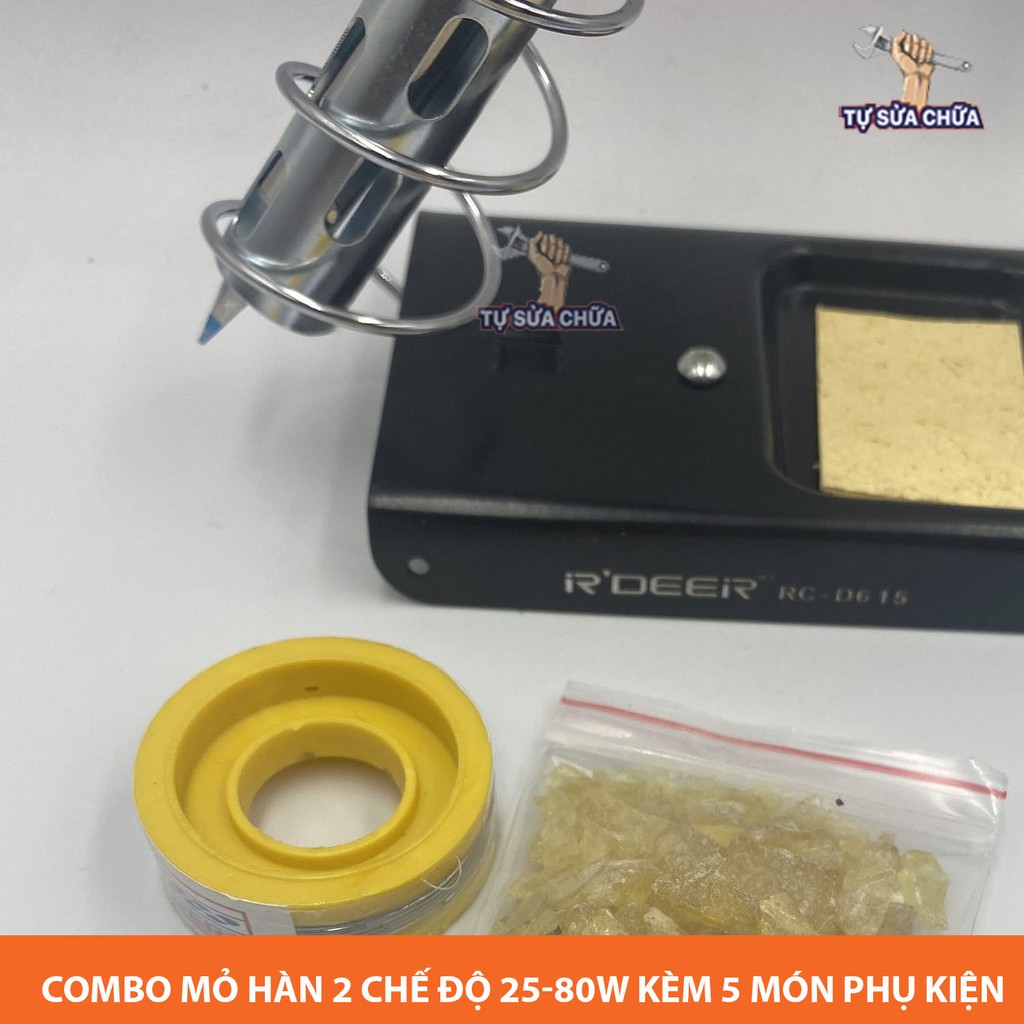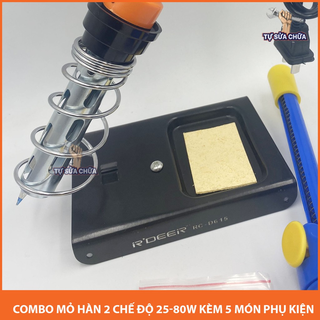 Combo Mỏ Hàn Thiếc 2 Chế Độ 25-80W và 5 Món Phụ Kiện ( Đế gác mỏ hàn, Bọt Biển, Thiếc Sunchi, Nhựa Thông, Hút Thiếc)