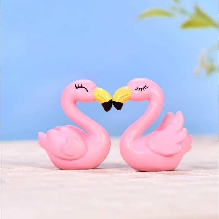 Combo mô hình đôi hồng hạc xinh xinh trang trí bánh, tiểu cảnh, terrarium, móc khóa, DIY