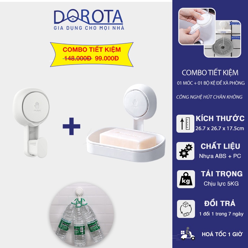 Nhà cửa & Đời sống > Đồ dùng phòng tắm > Kệ đựng xà phòng || Combo móc gắn tường chịu lực và kệ để xà phòng cao cấp DOROTA chịu lực 5kg MDT1GDXP1Còn hàng