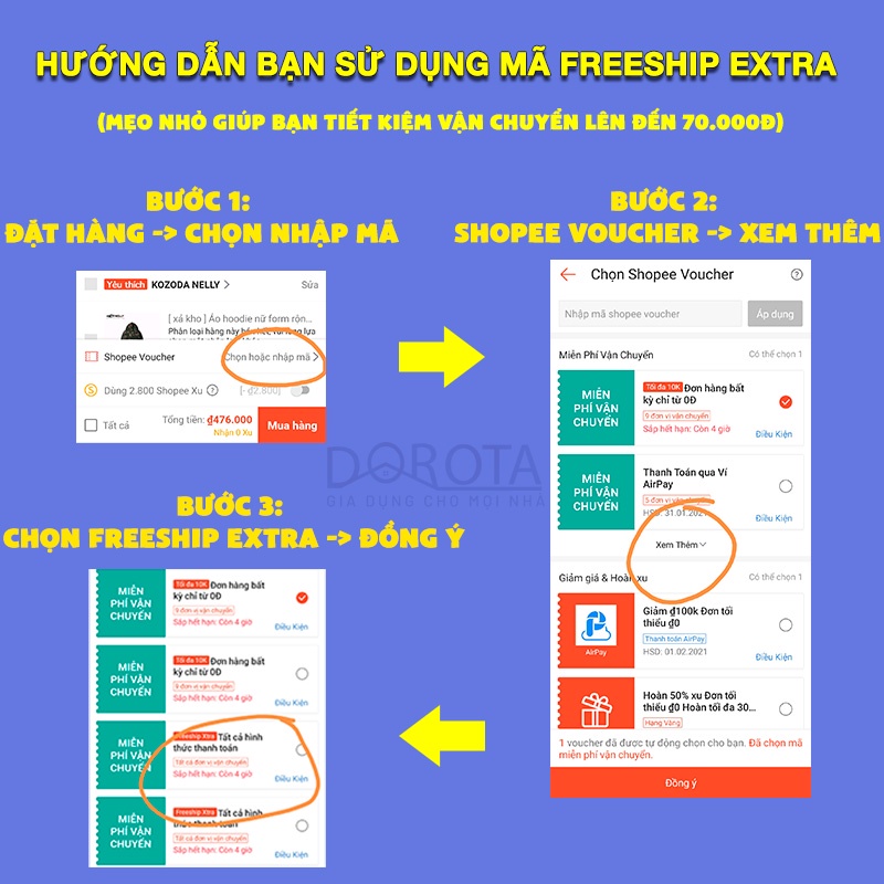 Khách hàng kính mến : - DOROTA là đơn vị F2C hàng đầu về lĩnh vực gia dụng tiện ích thông minh , chúng tôi luôn đặt ra tiêu chí sản phẩm đạt chuẩn xuất khẩu , dịch vụ khách hàng tận tâm trọn đời .DOROTA - GIA DỤNG CHO MỌI NHÀ