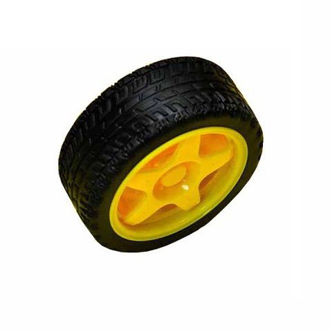 Bánh xe vàng làm bằng nhựa có độ bền cao, lốp xe làm bằng cao su màu đen.