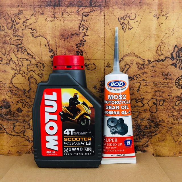 Ô tô > Dầu nhớt và phụ gia ô tô > Mỡ & Chất bôi trơn || Combo Motul Scooter Power LE 5w40 800ml nhớt hộp số 120mlCòn hàng