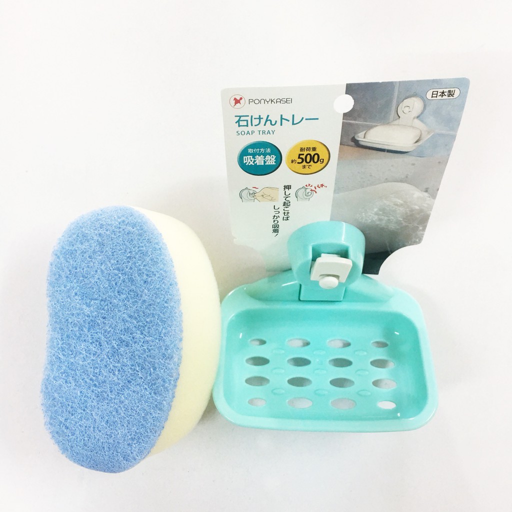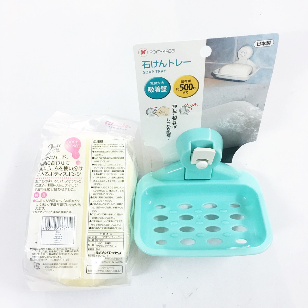 Combo Mút tắm tạo bọt 2 mặt Aisen + Giá để xà phòng hút chân không hàng Nhật Bản- Xuất xứ: Nhật Bản