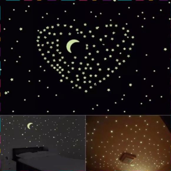 Combo ngôi sao mặt trăng trang trí phòng (phát sáng) sl 36 Zooyoo