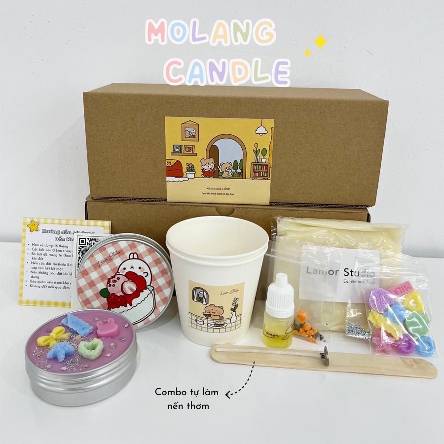 𝐂𝐨𝐦𝐛𝐨 𝐭𝐮̛̣ 𝐥𝐚̀𝐦 𝐧𝐞̂́𝐧 𝐭𝐡𝐨̛𝐦 𝐌𝐨𝐥𝐚𝐧𝐠🆘 Tâm hồn bạn đang ra tín hiệu 'ét o ét'? - Để Lamor hàn gắn tâm hồn bạn bằng combo tự làm nến thơm Molang bạn nha