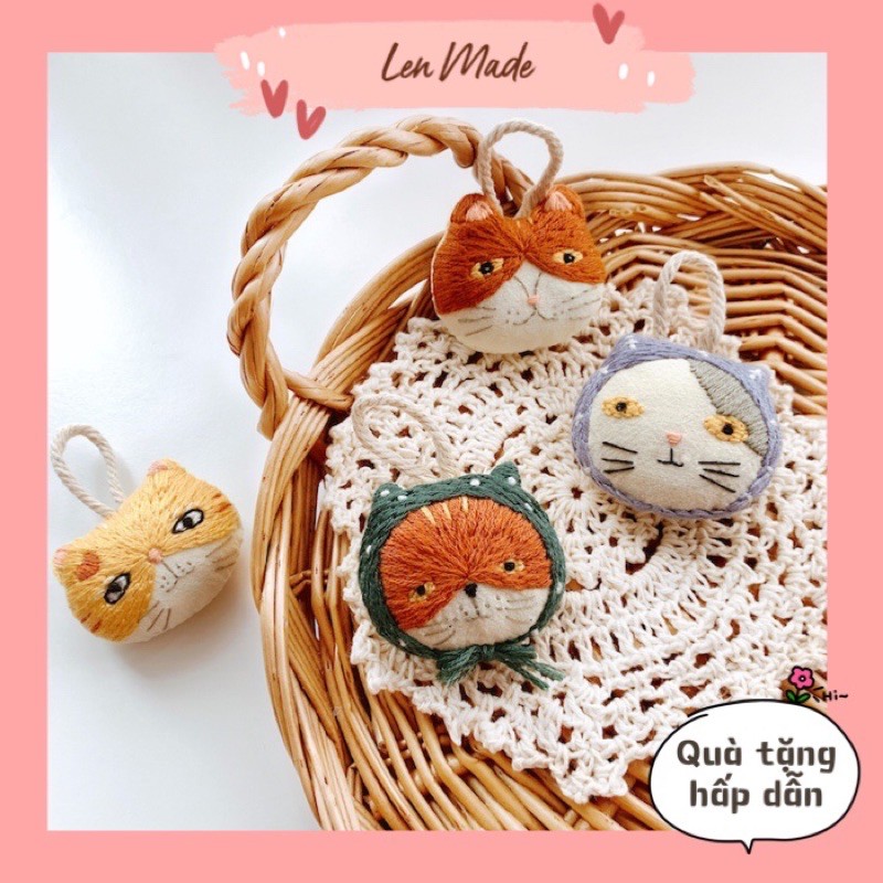 Sở thích & Sưu tầm > Dụng Cụ May Vá || Combo nguyên liệu thêu 4 chú mèo xinh xắn bộ kit tự làm quà tặng ý nghĩa lenmadeCòn hàng
