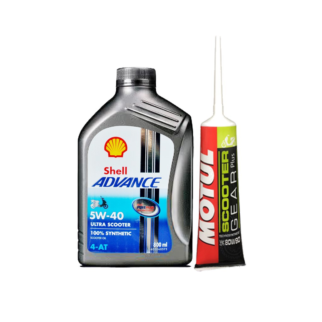 Combo nhớt hộp số Motul Gear Oil 80W90 120ml kèm nhớt xe tay ga cao cấp Ultra 5W40 800ml API SN
