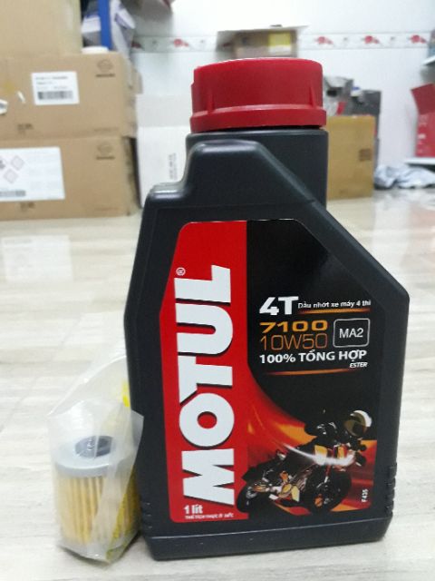 Combo gồm:Dầu nhớt tổng hợp hoàn toàn Motul 7100 10W-50 sử dụng 2500Km thay