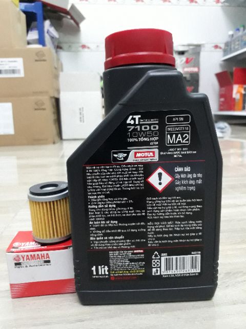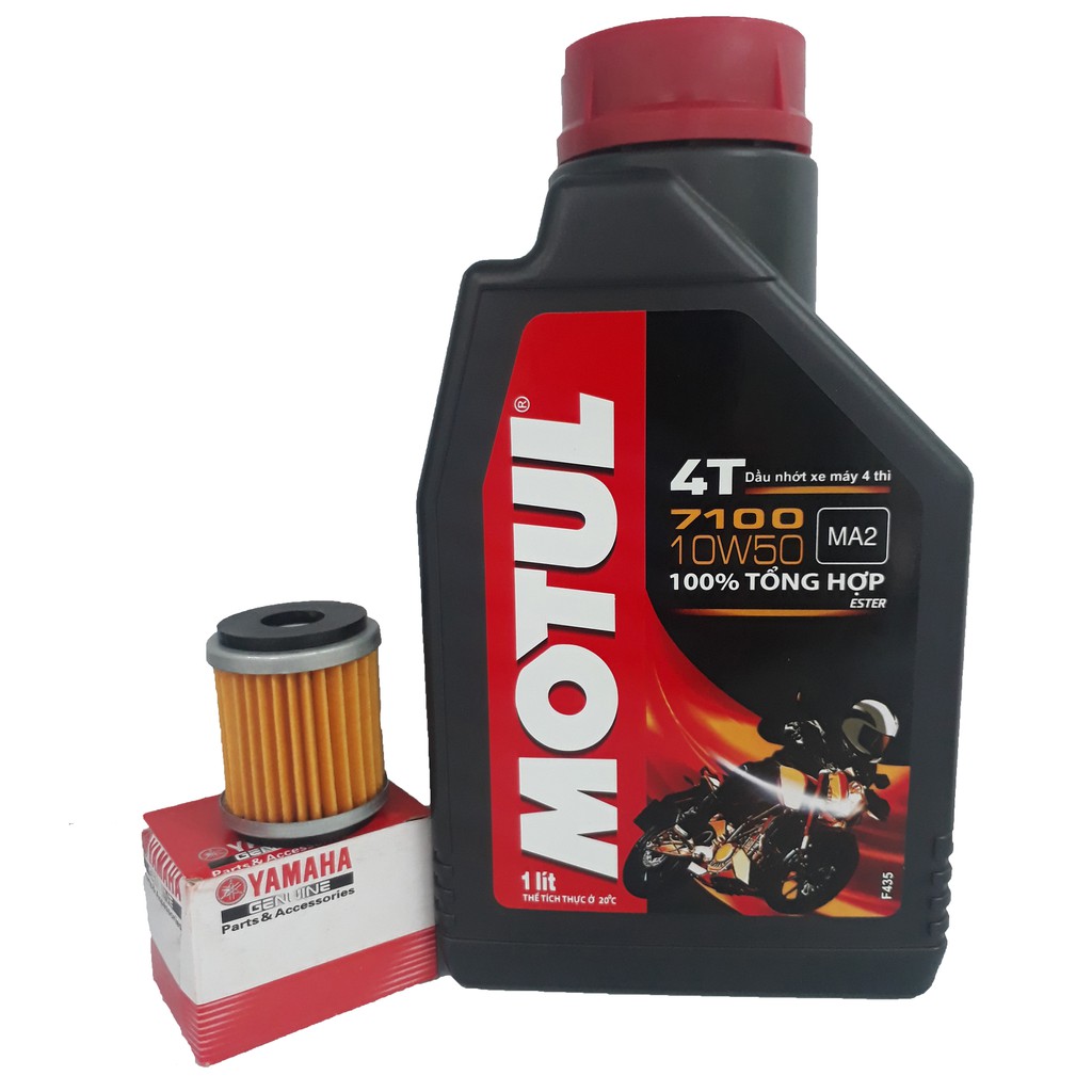 Combo nhớt máy Motul 7100 10W-50 và lọc nhớt Yamaha