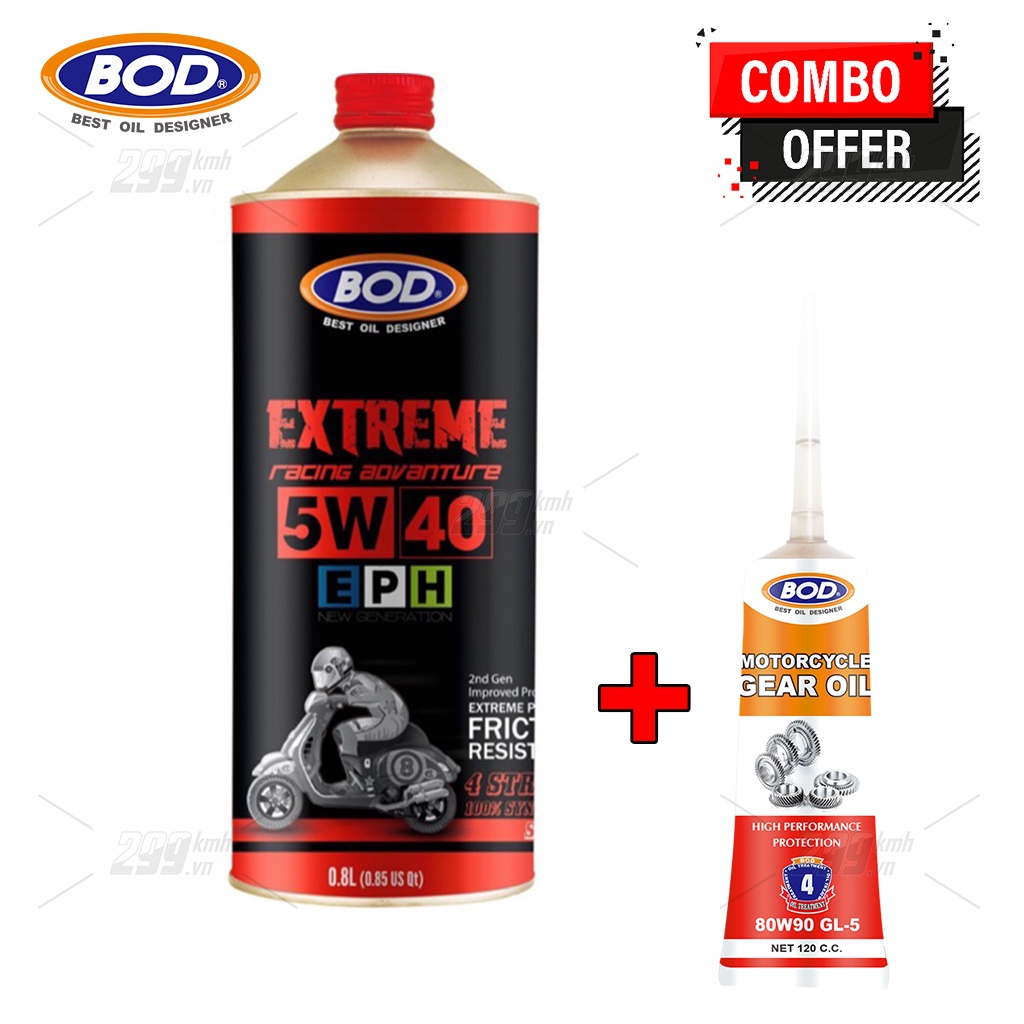 Giới thiệu Combo Nhớt xe tay ga BOD Extreme Racing 5W40 MB 0.8L + Nhớt lap (nhớt hộp số) xe tay ga BOD Gear Oil 80W90 GL-5 120ml