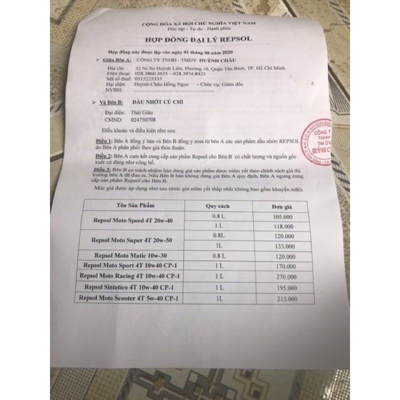 Combo nhớt xe tay ga cao cấp Repsol Scooter 10W40 800ml tặng nhớt hộp số Repsol Gear Oil 120ml