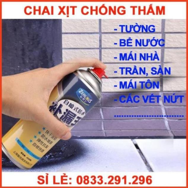 Tên sản phẩm: Chai xịt chống thấm Waterproof Spray PolyurethaneBịt kín mọi KHE NỨT , chống thấm TƯỜNG, TRẦN, MÁI NHÀ , SÂN THƯỢNG, NHÀ VỆ SINH, MÁNG SÓI, ...