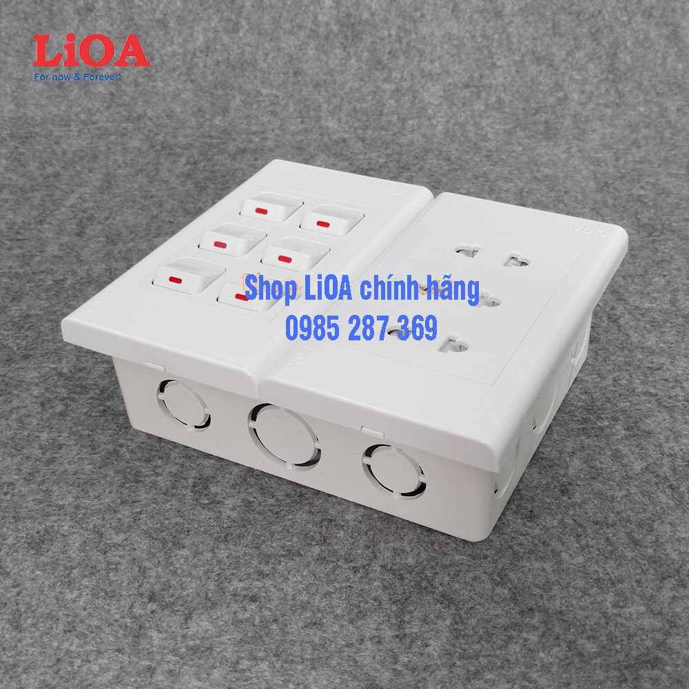 Combo ổ cắm điện ba 2 chấu LiOA 16A 3520W + 6 công tắc điện - Lắp âm tường
