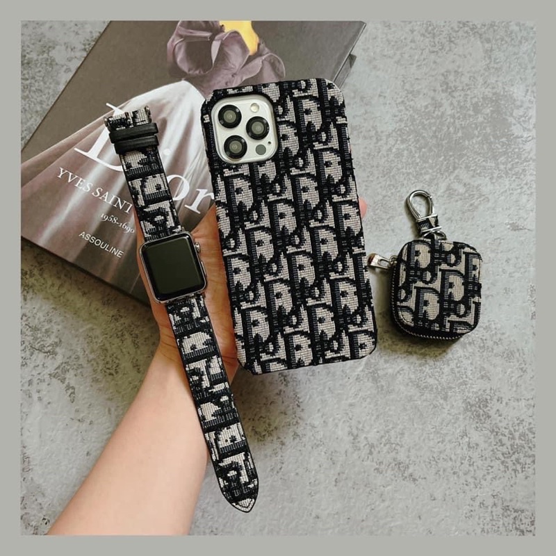 Điện Thoại & Phụ Kiện > Khác || COMBO ỐP VẢI DẠ DI O R CÓ DÂY ĐEO ĐỒNG HỒ AP P L L E WA T CH VÀ BỌC TAI NGHE AIRPODSSSCòn hàng