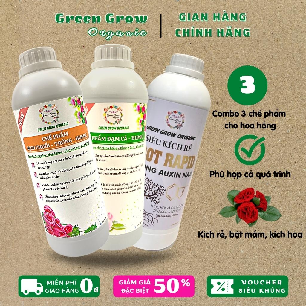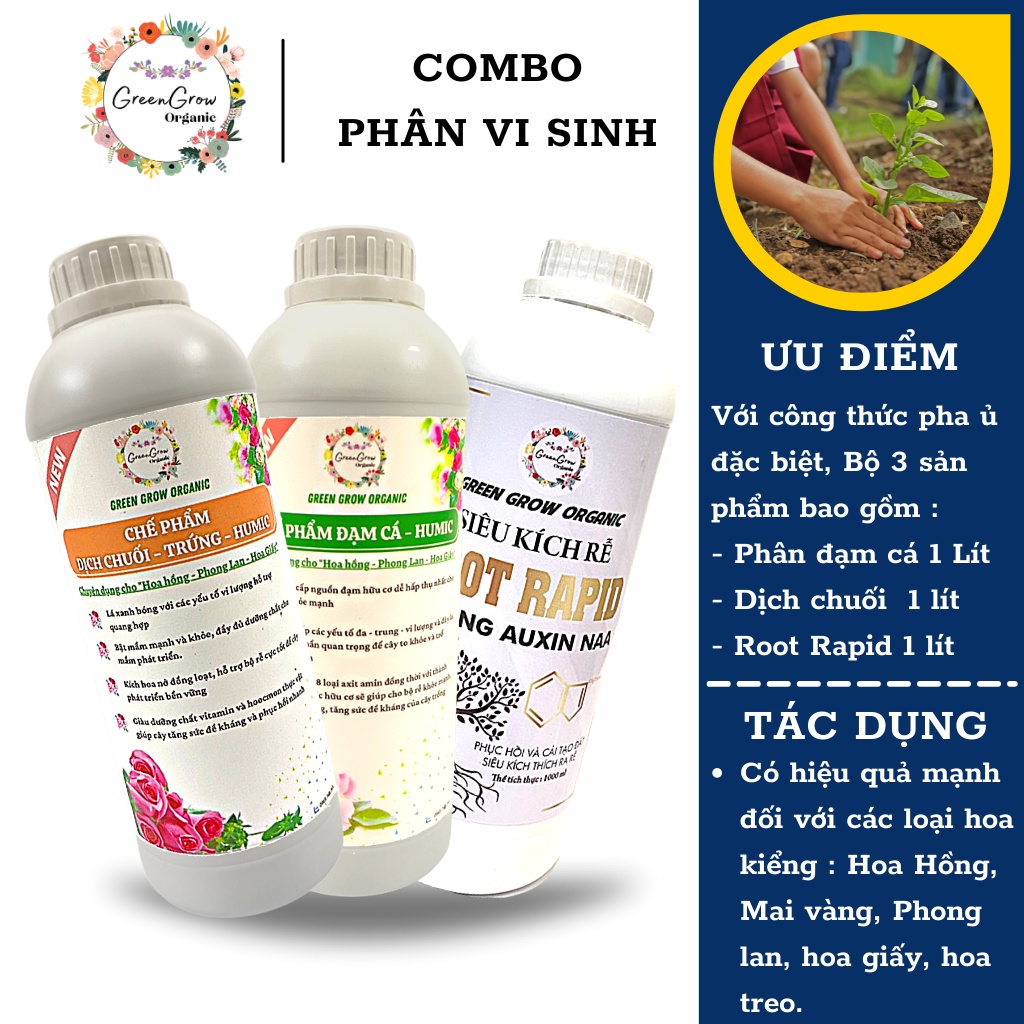 Combo phân đạm cá, dịch chuối trứng, siêu kích rễ Root Rapid Green Grow Organic mỗi chai 1 lít, phân bón hữu cơ vi sinhBộ 3 là sự kết hợp kỳ diệu phù hợp cho mọi giai đoạn phát triển của cây.