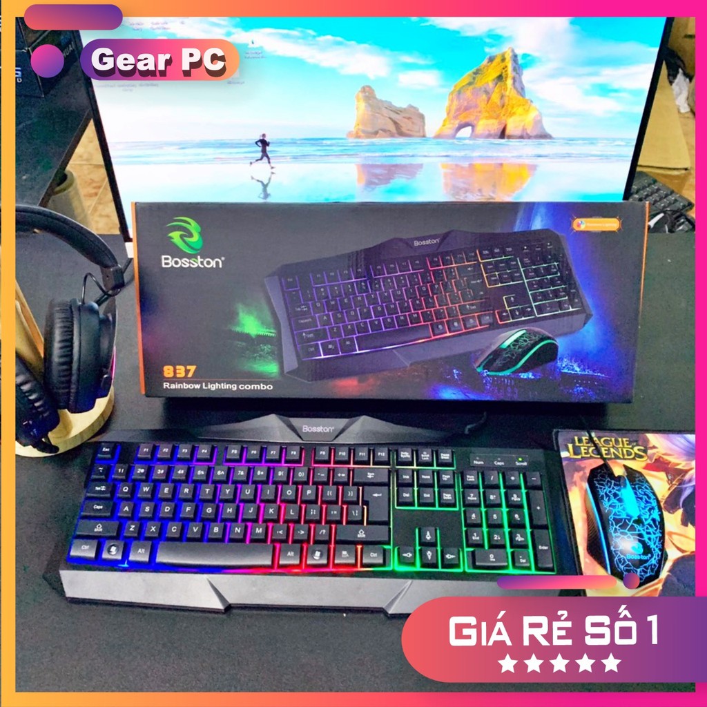 Combo Phím Chuột Giả Cơ Bosston 837 LED - TẶNG KÈM BÀN DI GAMING- Bảo Hành 1 Đổi 1 - Máy Tính Báo Hồng