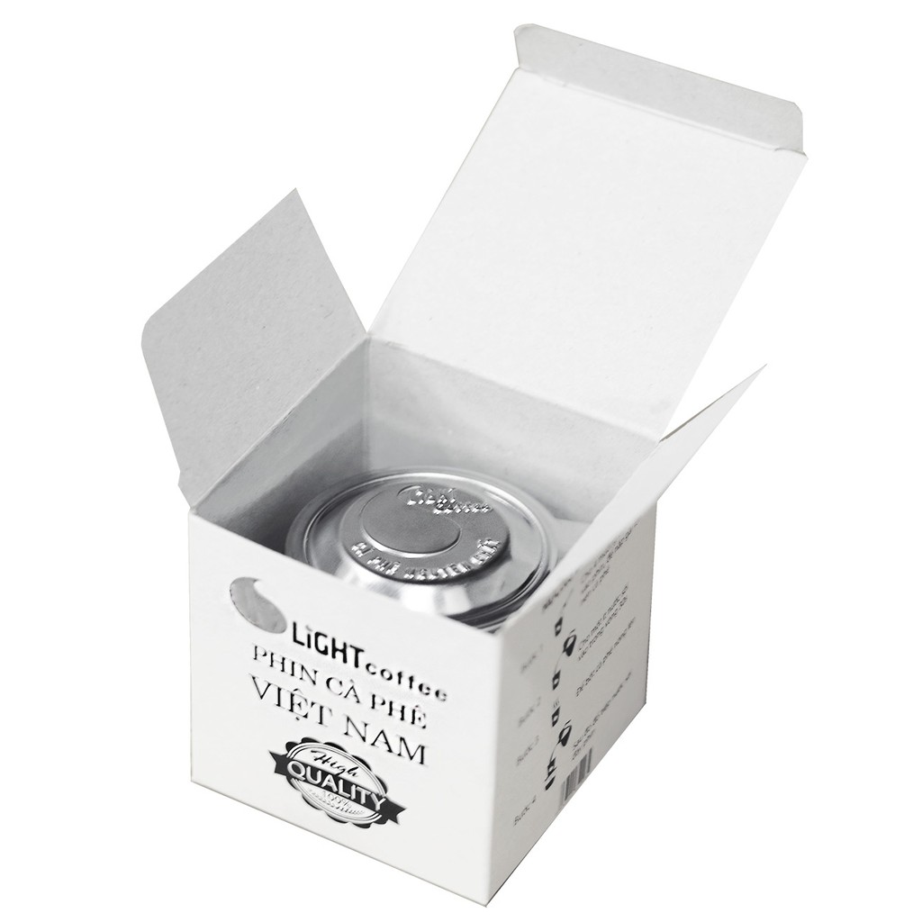 Phin pha cà phê thương hiệu Light Coffee do Công ty cổ phần Sản xuất và Thương mại Kim Cương Xanh sản xuất riêng, dùng để pha cà phê đen nóng, chất liệu inox cứng cáp, không phải loại inox mỏng manh như hàng trôi nổi ở chợ. Phin pha cà phê được thiết kế đẹp mắt, có tay cầm, phần đế dính liền với thân dễ dàng sử dụng.