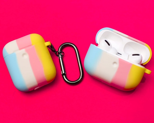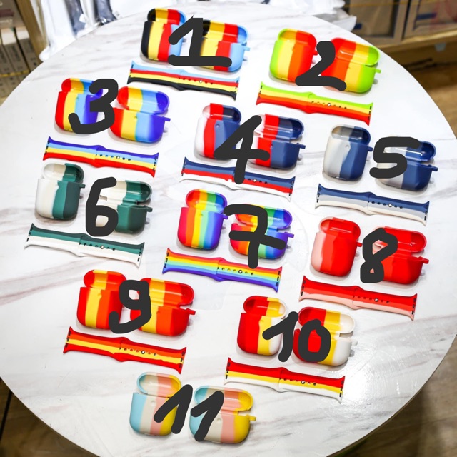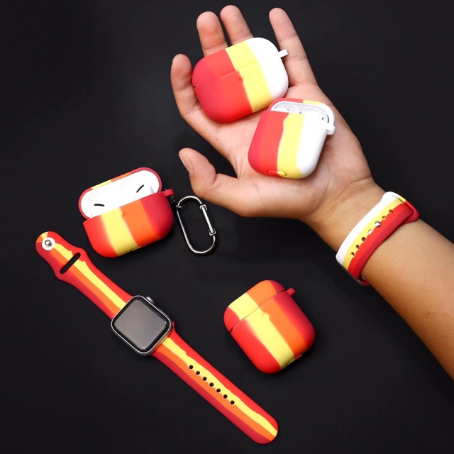 COMBO PHỤ KIỆN : DÂY CAO SU SỌC PHỐI MÀU CỰC XINH CHO APPLEWATCH VÀ BAO DA AIRPODS1/2/Pro