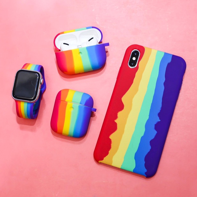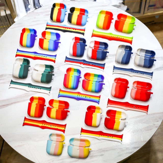 COMBO PHỤ KIỆN : DÂY CAO SU SỌC MÀU APPLEWATCH CHO VÀ BAO DA AIRPODS 1/2/PRO