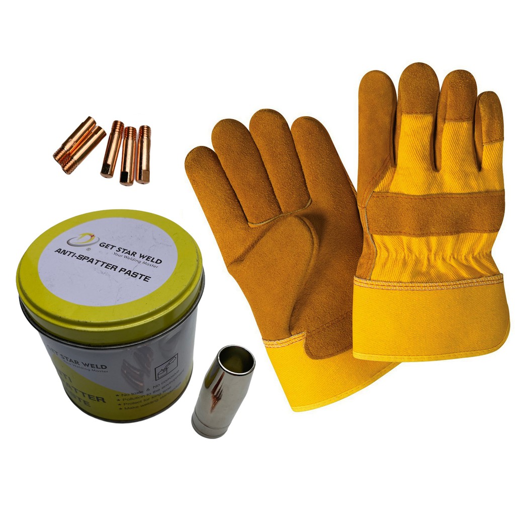 Nhà cửa & Đời sống > Dụng cụ & Thiết bị tiện ích > Găng tay, kính bảo hộ & mặt nạ || Combo Phụ kiện hàn MIG: 1 hộp mỡ hàn + 1 chụp khí + 5 bep 1.0 + găng tay hàn da bò cổ ngắnCòn hàng