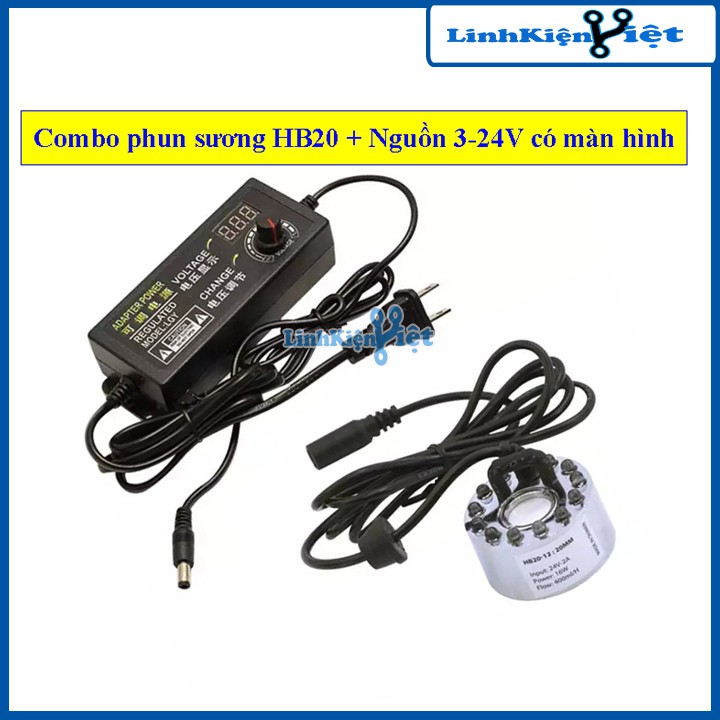 Combo phun sương HB20 12 led và nguồn điều chỉnh điện áp 3-24V 2A có màn hình hiển thị (điều chỉnh lượng sương)