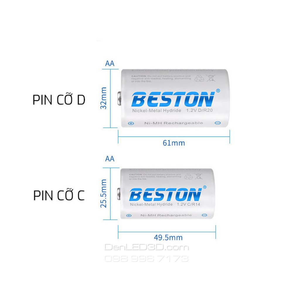 Pin sạc cỡ C (pin cỡ trung) / D (pin cỡ đại) hiệu BESTON chính hãng có thể sử dụng trong các loại máy móc, đồng hồ, radio... với thời gian sử dụng lâu dài, tiết kiệm tiền vì có thể sạc đi sạc lại tới 1000 lần.