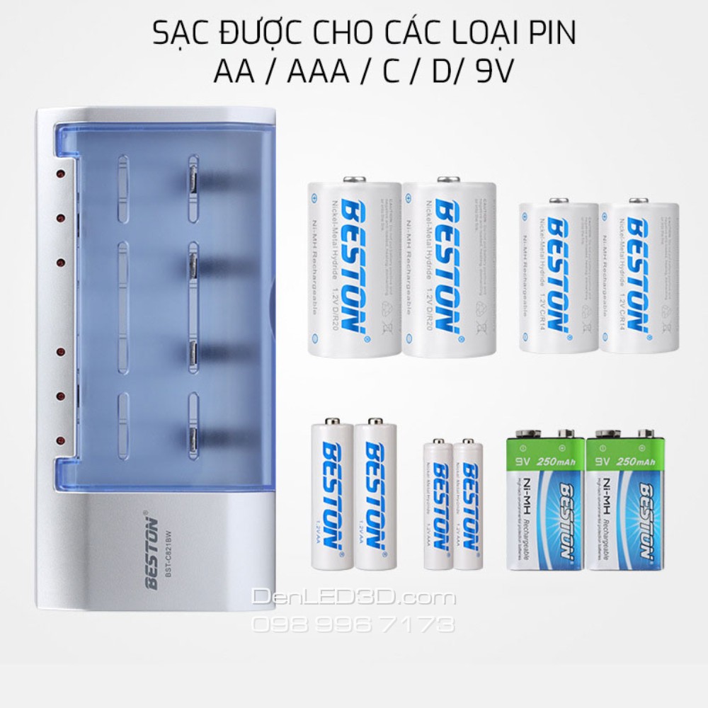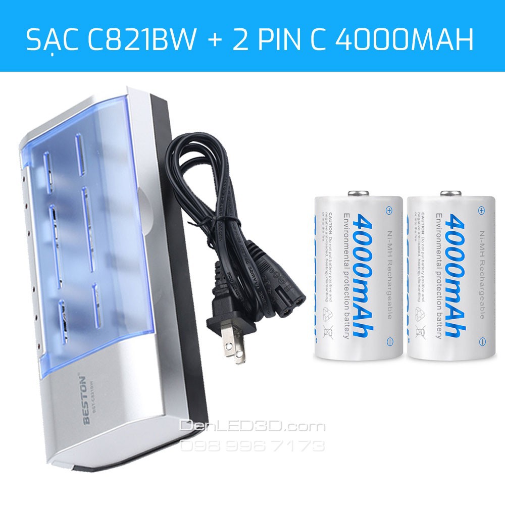 Combo Pin Sạc Beston Cỡ C/D 4000/5000mAh Kèm Sạc C821BW