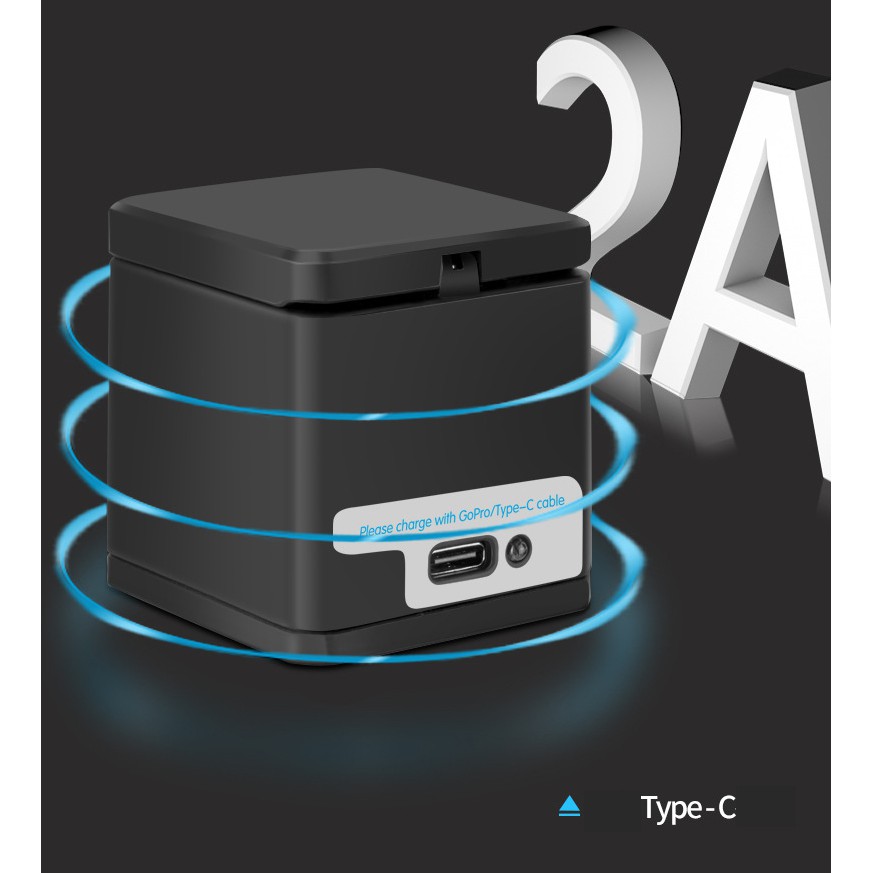 Giới thiệu Combo pin sạc cho Gopro 5 6 7 8 black white silver - 2 pin 1 sạc chính hãng Telesin (tặng cường lực gopro tùy chọn)
