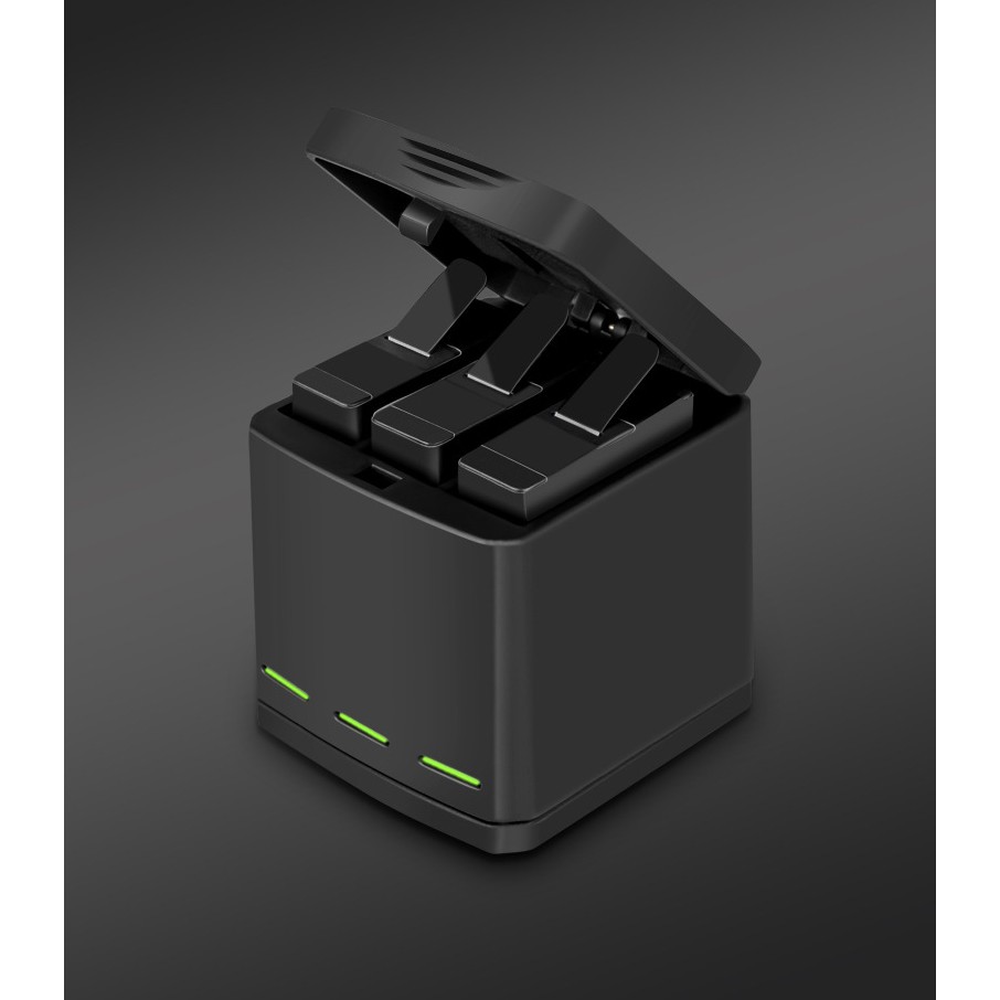 Bộ sản phẩm bao gồm: 1 dock sạc 3 khe, 2 pin gopro, 1 bộ dán gopro (tùy chọn)
