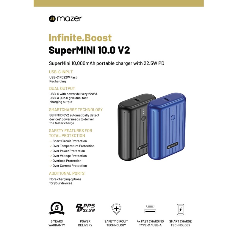 Giới thiệu Combo (Pin sạc dự phòng Mazer Power.Boost Supper Mini 10.0V2 - 10.000mAh + Cáp USB-C to Lightning Mazer ALU.DURA.TEK II