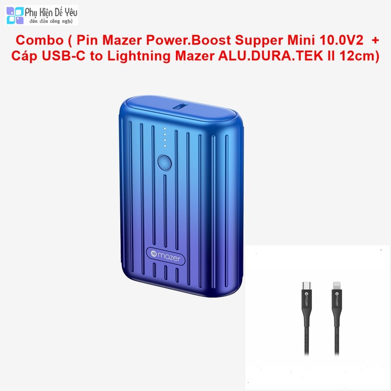 Combo (Pin sạc dự phòng Mazer Power.Boost Supper Mini 10.0V2 - 10.000mAh + Cáp USB-C to Lightning Mazer ALU.DURA.TEK II