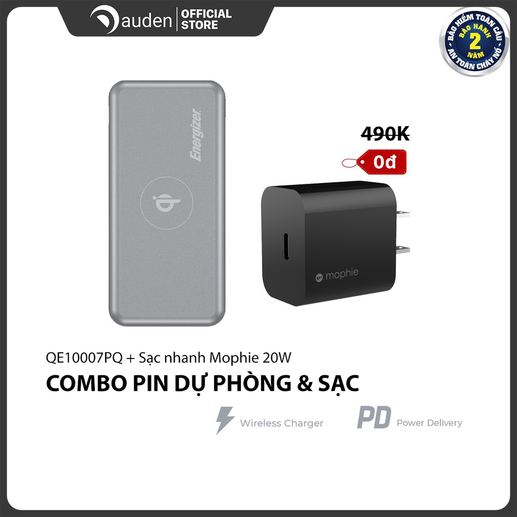 Điện Thoại & Phụ Kiện > Pin sạc dự phòng > 5000 - 10000mAh || Combo Pin sạc dự phòng Energizer QE10007PQ + Củ Sạc Nhanh Mophie 20WCòn hàng