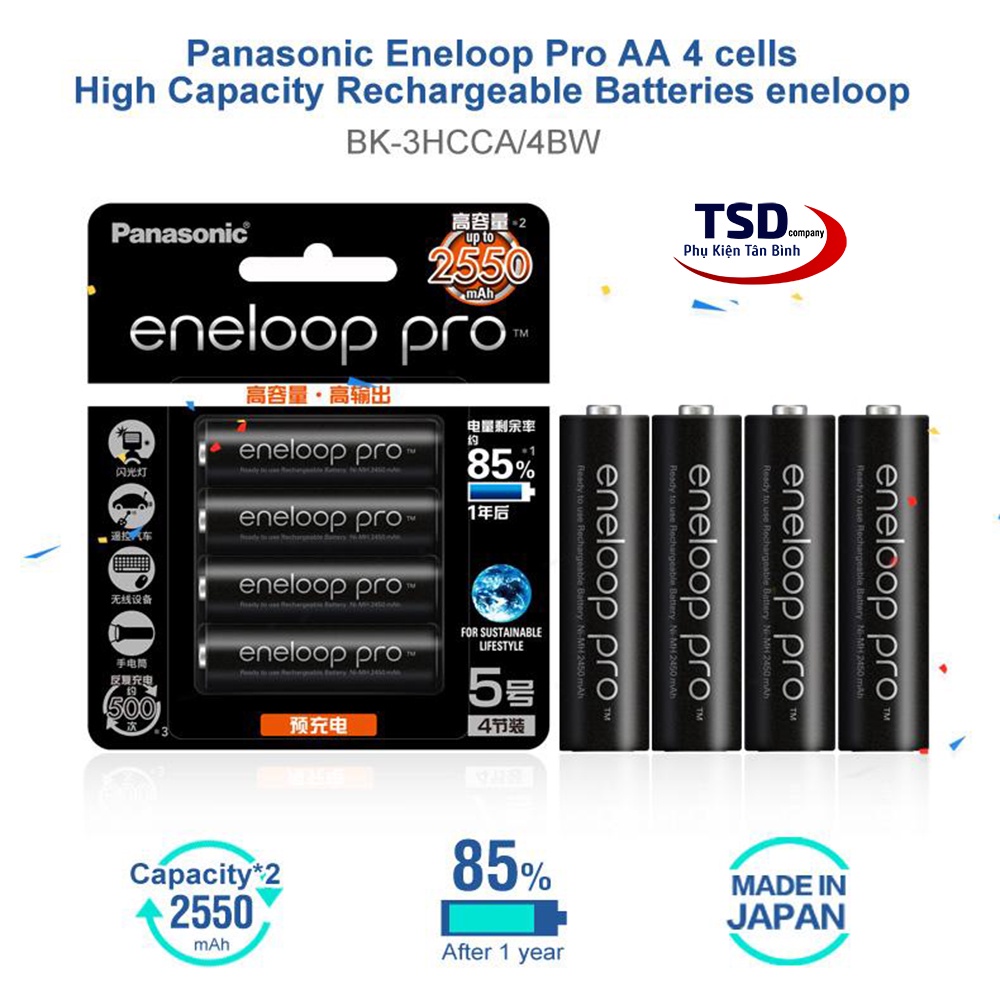 Pin Sạc AA Eneloop Pro BK - 3HCCE/4B Chính Hãng Sản Xuất Tại Nhật Bản Cho thời gian lưu trữ năng lượng lên 05 năm . Là Dòng Pin dung lượng cao nhất của Panasonic , Lên tới 2550 mah . Đảm bảo đáp ứng một cách tốt nhất cho nhu cầu năng lượng của mọi thiết bị.