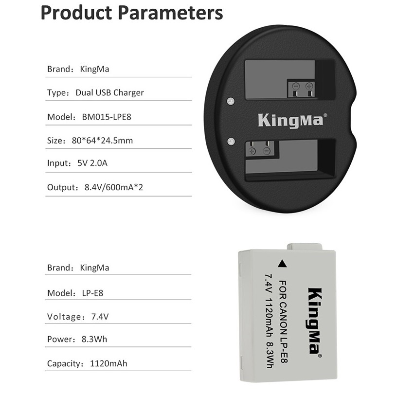 Cameras & Flycam > Phụ kiện máy ảnh > Đế pin || Combo pin sạc Kingma cho Canon LP-E8Còn hàng