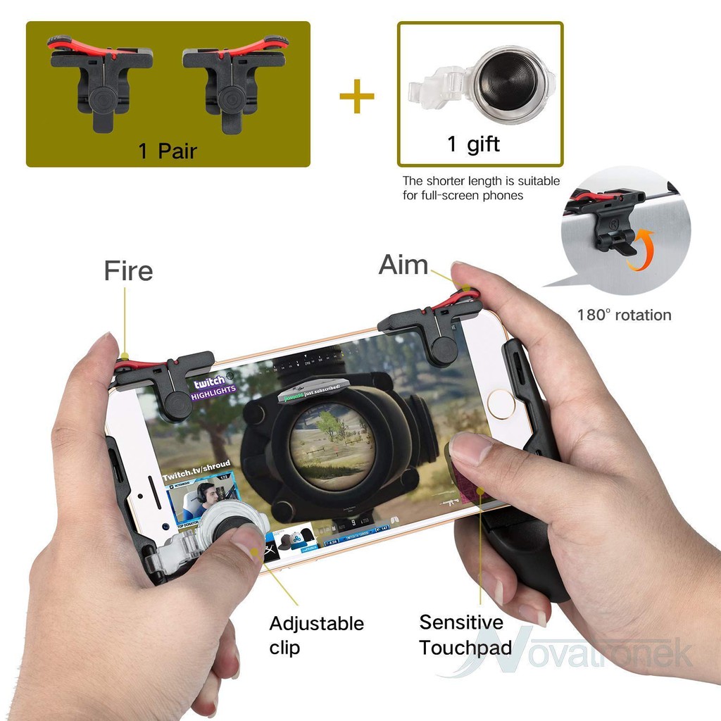 Combo PUBG 3 trong 1 bộ tay cầm chơi game và bộ 2 nút controller chơi game pubg D9 cho mobile