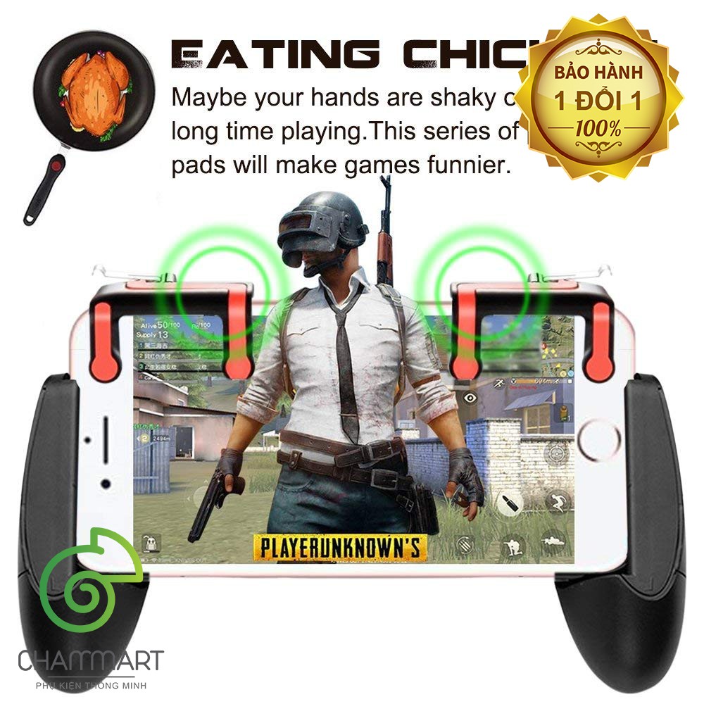 Không cần đến những chiếc máy chuyên game đắt đỏ mà chỉ cần sử dụng những món phụ kiện tay cầm giá rẻ dưới đây cũng chiến game ngon lành hơn rất nhiều trên tất cả các dòng smartphone rồi. [COMBO PUBG] Tay cầm chơi game Trứng + Nút bấm chơi Pubg dòng MX là một trong những phụ kiện có thể giúp game thủ lên top 1.- Giúp máy mát hơn do không tiếp xúc trực tiếp với tay.