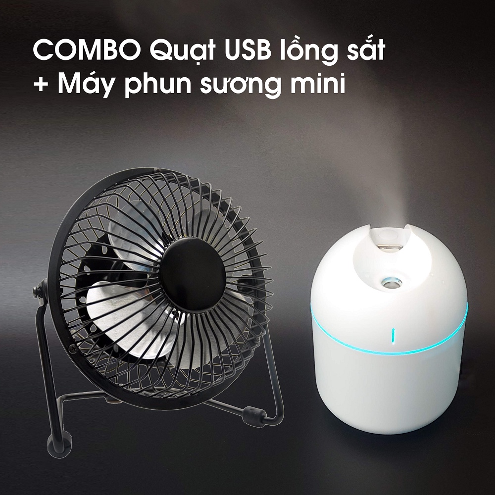 COMBO quạt USB lồng sắt + máy phun sương làm mát