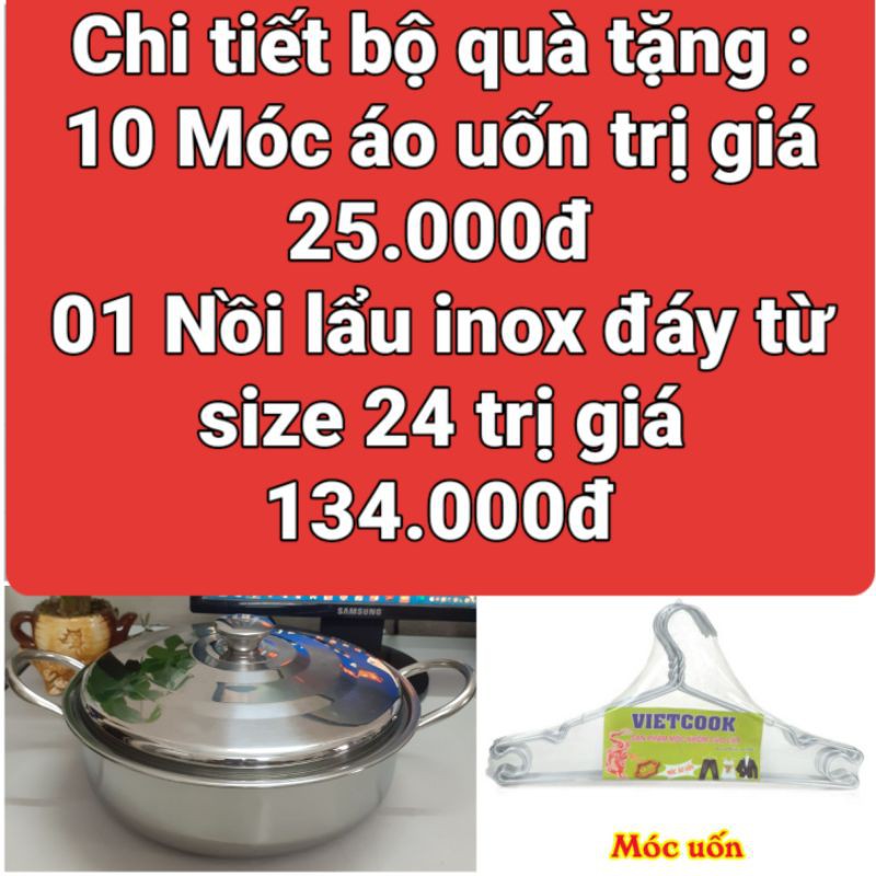 - 01 Nồi lẩu inox đáy từ Vietcook size 24 trị giá 134.000đ khi mua