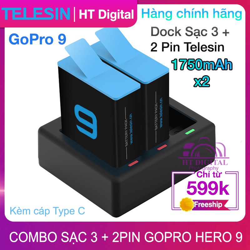 Combo Sạc 3 + 2 Pin cho GoPro 9 10 Telesin - Bộ Pin Sạc Cho Máy Quay Hành Trình GoPro Hero 10 - Phụ Kiện GoPro