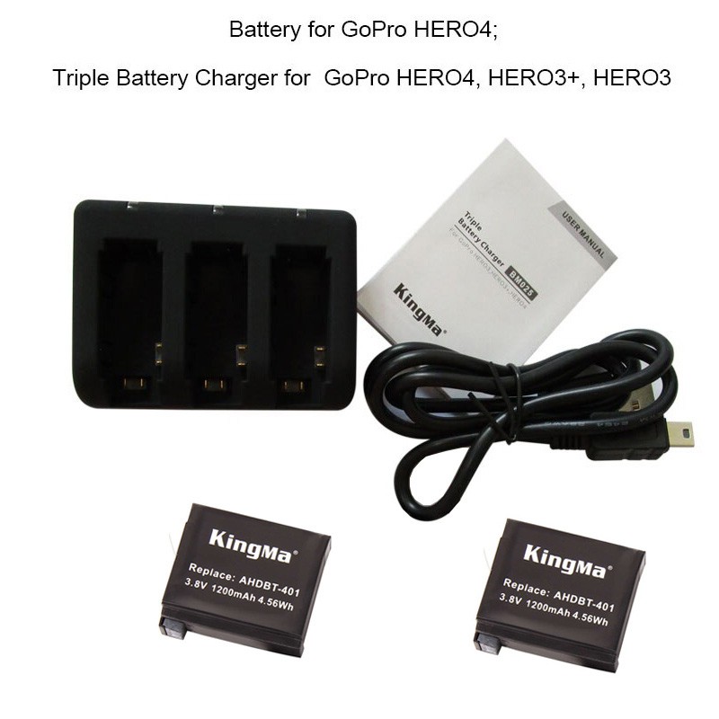 Cameras & Flycam > Phụ kiện máy ảnh > Bộ sạc pin || Combo sạc 3 + 2 viên pin Kingma cho GoPro Hero 4Còn hàng