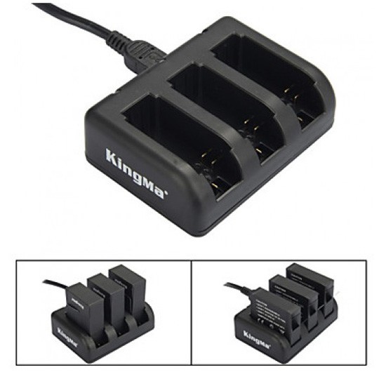 Combo sạc 3 + 2 viên pin Kingma cho GoPro Hero 4- Sạc 3 có thể sạc 3 viên pin GoPro Hero 3, GoPro Hero 4 cùng một lúc.