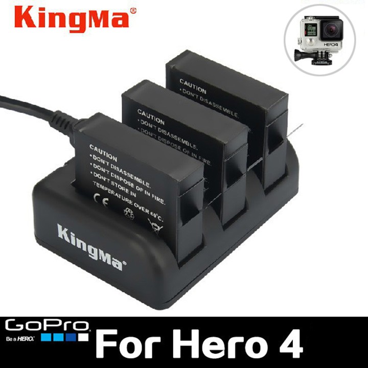 Combo sạc 3 + 3 viên pin Kingma cho GoPro Hero 4