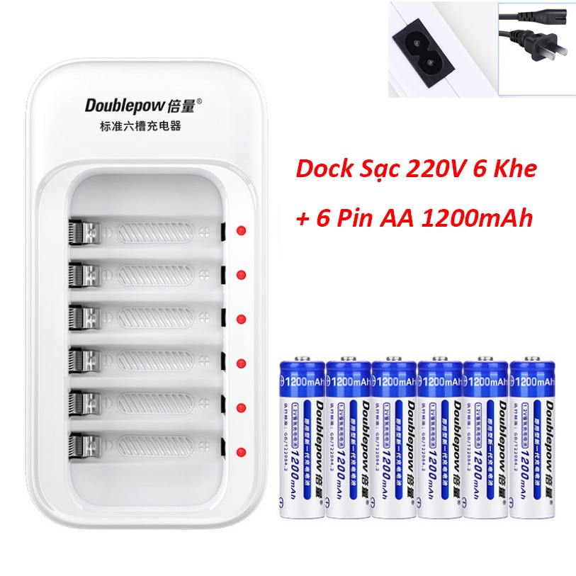 Combo Sạc 6 Khe và 6 Viên Pin Sạc AA NiMh Doublepow 1200mAh MiCro Karaoke Đồ Chơi Trẻ Em Cam Kết Dung Lượng Thật