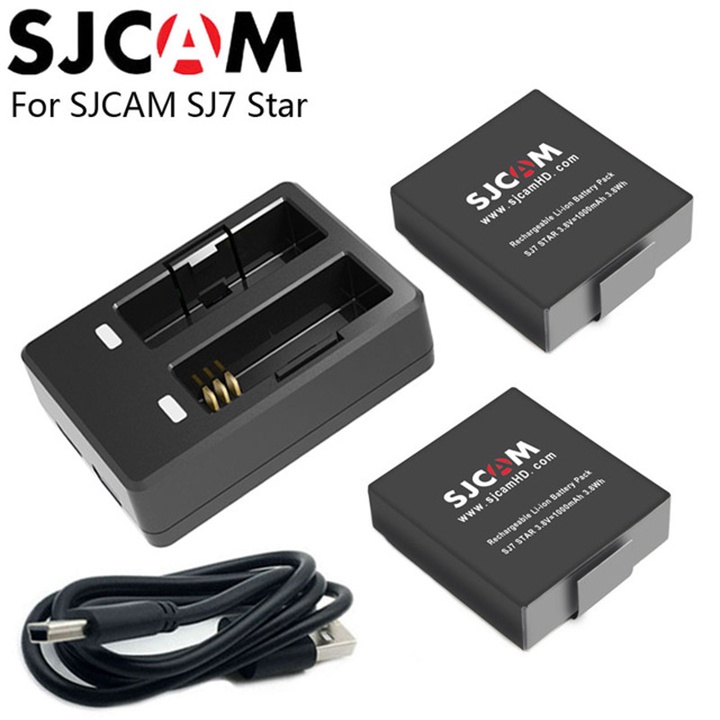 Combo sạc đôi + 2 pin cho Sjcam SJ7 STAR- Viên pin có dung lượng 1000mAh cho thời gian quay liên tục khoảng 80 phút ở chế độ Full HD